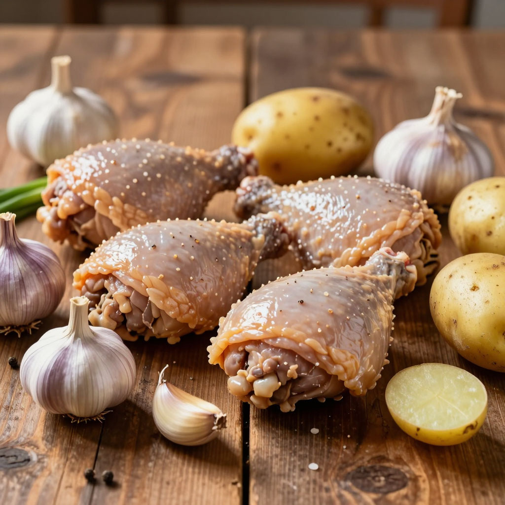 1) Для супа: 2 куриных бедра, 1 морковка, 1 репчатый лук, 2 картофелины, по вкусу - соль и перец.