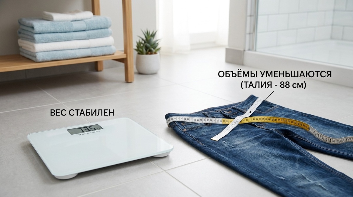Я всегда советую не влюбляться в одну цифру. Вес полезен. Но он не единственный ориентир. Смотрите на талию, на то, как сидят брюки, как меняется выносливость, сколько шагов вы проходите, как спите, насколько легче стало подниматься по лестнице. Иногда именно эти маркеры говорят о прогрессе раньше весов.