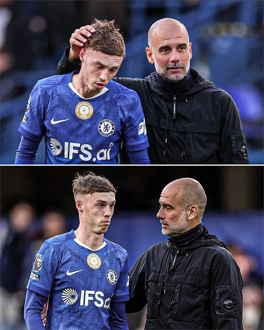 Пеп Гвардиола утешает своего бывшего игрока Коула Палмера после матча
