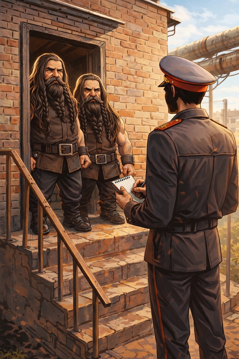 Второй дварф подошёл ближе, скрестил руки на груди и внимательно посмотрел на участкового.