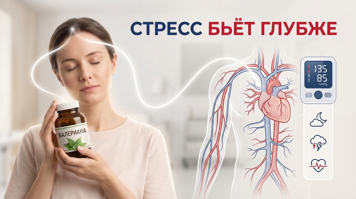 Вы пьёте валерьянку, потому что «это же просто нервы». Но если стресс тянется неделями и месяцами, организм уже живёт не в режиме краткой встряски, а в режиме постоянной тревожной готовности, и это влияет не только на настроение, но и на давление, сон и сердечно-сосудистый риск.