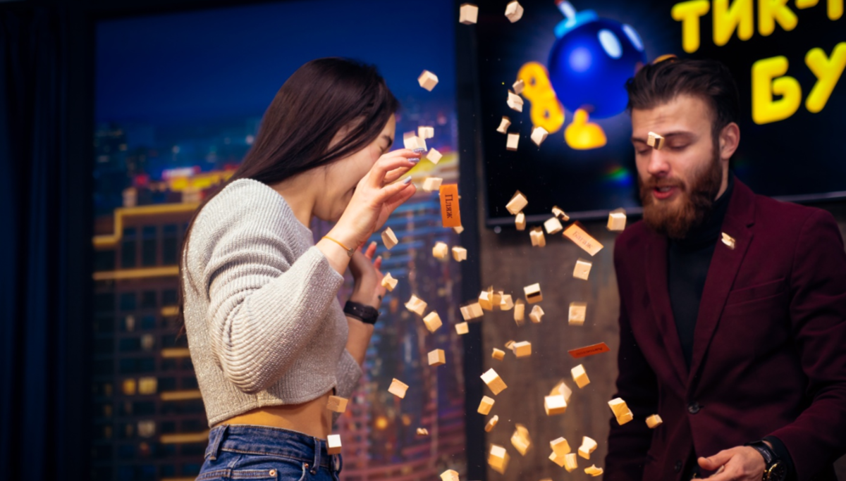 Сайт, кстати, вот: https://showtoday.ru/kazan — можно сразу посмотреть, как это выглядит. По ощущениям — и то, и другое. Формально это шоу-игра по мотивам известных передач вроде «Где логика?» или «Импровизация». Но на деле всё проще: вы приходите компанией и сами оказываетесь внутри этого формата. Вас делят на команды, появляется ведущий, начинается движ — и через 10 минут уже забываешь, что вообще собирался «просто посмотреть». Самое интересное — никто не заставляет, но в какой-то момент ты уже стоишь, что-то показываешь, объясняешь, споришь с друзьями и смеешься. Очень многое здесь держится на подаче. С вами работает команда: Плюс визуал: В какой-то момент реально ловишь себя на мысли, что это