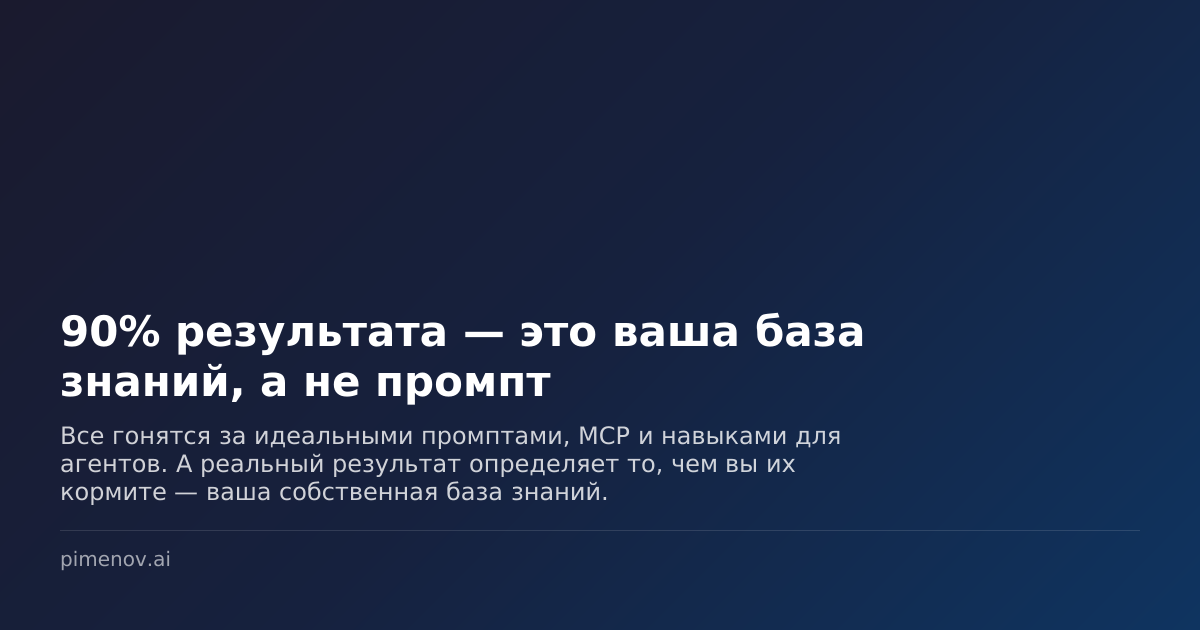 Все гонятся за идеальными промптами, MCP и навыками для агентов. А реальный результат определяет то, чем вы их кормите — ваша собственная база знаний. Все обсуждают промпты. Все ищут идеальный MCP-сервер. Все хотят найти тот самый навык, который сделает ИИ-агента гениальным копирайтером. А потом удивляются, что на выходе — один и тот же «ИИ-стиль», который уже узнаётся с первой строчки. Проблема не в модели и не в промпте. Проблема в том, чем вы кормите агента. Любой хороший копирайтер вам скажет: мастерство приходит через сотни часов чтения чужих текстов. Продающие письма, лендинги, рассылки, заголовки — всё это годами складывается в голове в систему паттернов. Никто не зубрил учебник «Огилви о рекламе» от корки до корки, а потом сел и написал шедевр. Так почему мы ожидаем именно этого от ИИ-агента? Даём ему одну инструкцию в системный промпт — и ждём чуда. Я на собственном опыте убедился: результат на 90% определяется тем, что лежит в вашей базе знаний, а не тем, какой промпт вы напи
