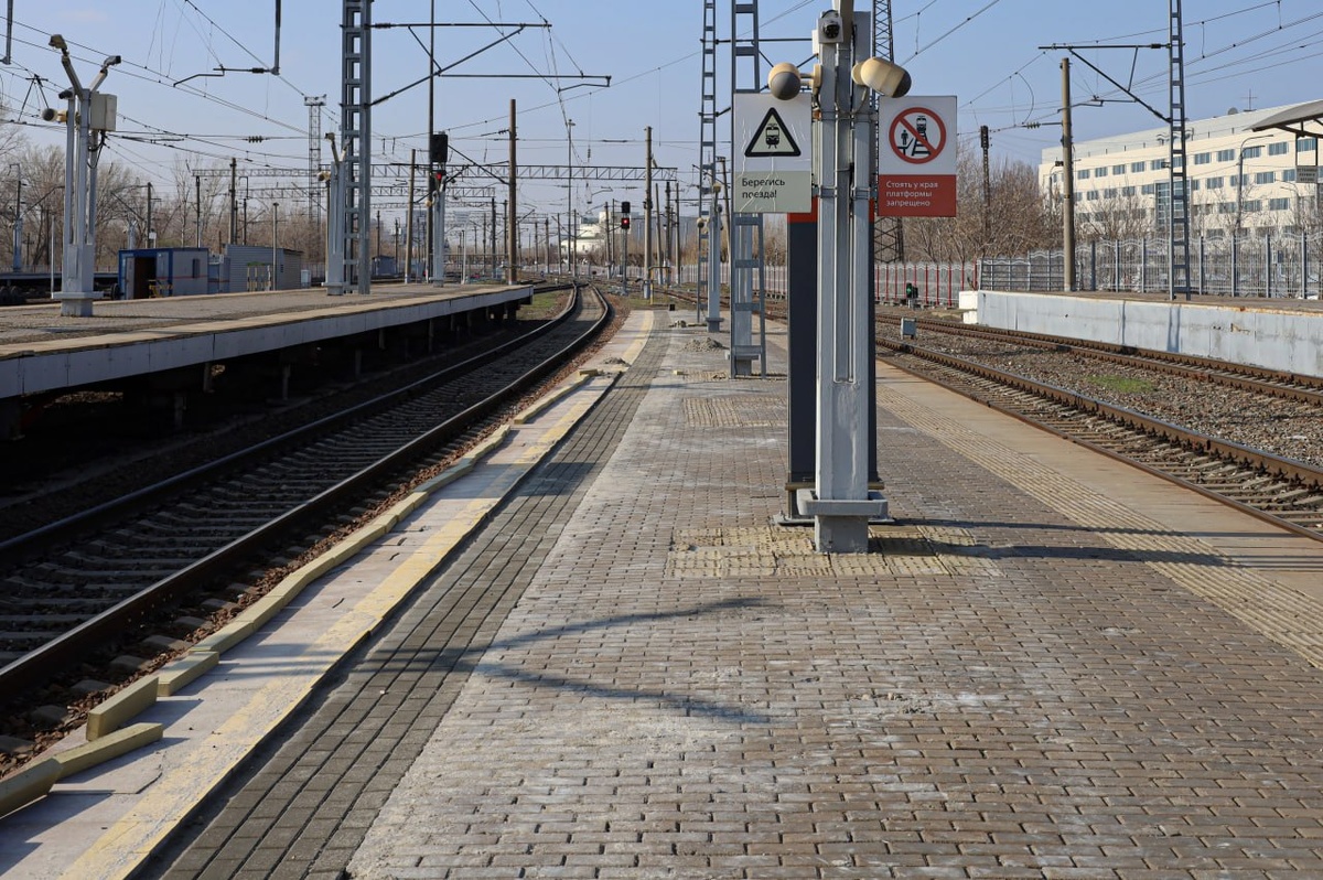 Казань-1. 🛤Инфраструктура, построенная в начале десятых во время подготовки к мероприятиям игр Универсиады приходит в негодность. Плиточное покрытие посадочных платформ постепенно изнашивается. Поля битой разнородной плитки навевают чувства уныния. В 2024 планировался капительный ремонт покрытия, по некоторым причинам не состоялся. Спустя 2 года работы все-таки начались. 🚜Низкая береговая посадочная платформа. Выполняют работы по демонтажу изношенных тактильных плит и установке тактильно-контрастных указателей(иначе-шуц-линий, впрочем, можно назвать их как угодно, хоть слитками золота). В отличие от стандартной ограничительной линии эти линии воспринимаются, в тч, слабовидящими пассажирами. 📸1️⃣➡️2️⃣. Выходим на привокзальную площадь. Когда-то сверкающий сквер ветшает(это предмет отдельного исследования). Далее, улицы Саид-Галиева и Б. Шахиди-основные этой части города. На значительном протяжении участка отмечаются сильные просадки покрытия, причина-неудовлетворительное со