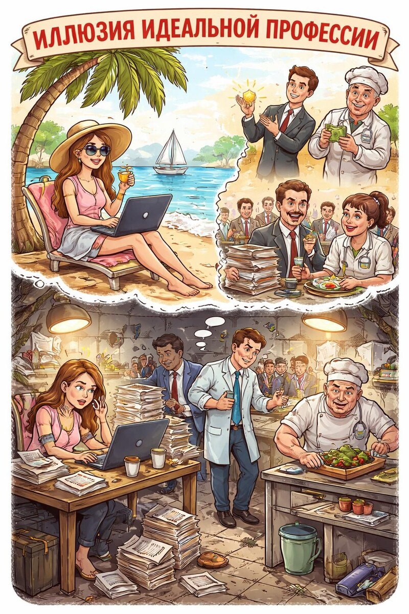 Вы верите, что где-то есть та самая работа? Где вы просыпаетесь с улыбкой, ходите на совещания как на праздник, а деньги падают сами в кошелек за удовольствие. Это называется иллюзия идеальной профессии. И она — главная причина вашей усталости от поиска.
