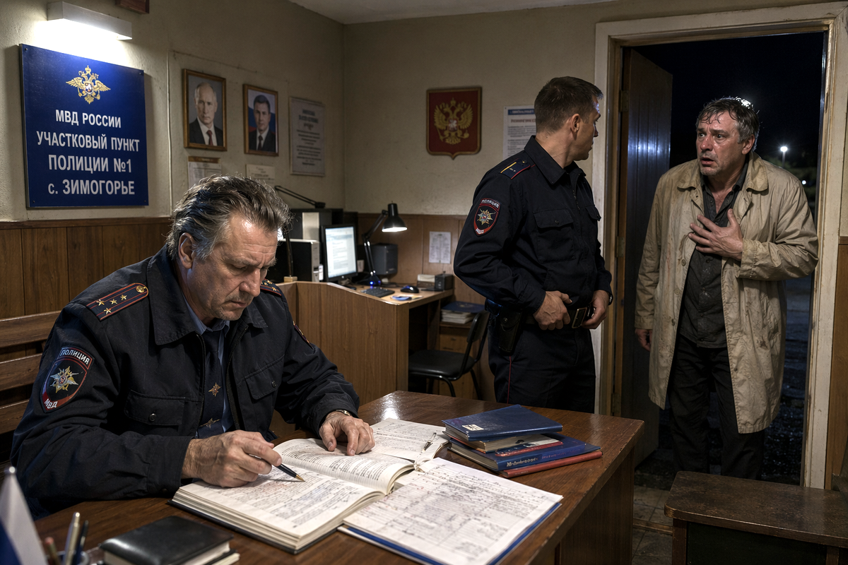 Исключение составляли лишь два окна нового дома, стоящего на краю села возле трассы на Безветров. Лампочка, горевшая над входом, подсвечивала синюю табличку, на которой красовался герб и надпись: «МВД России. Участковый пункт полиции № 1 с. Зимогорье».