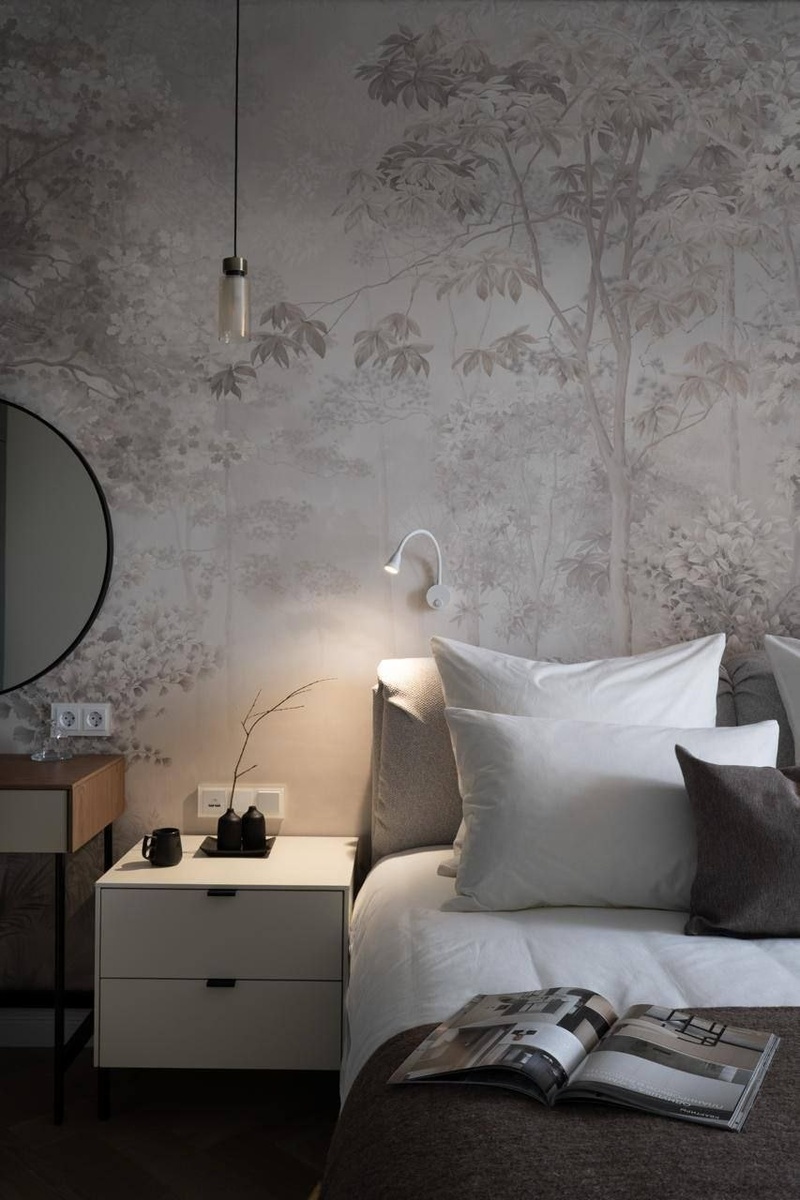 @maximova_interi Главным декоративным элементом спальни выступает бесшовное настенное панно #Atmosphere@affrescoru (арт. AF527-COL2), занимающее всю стену за изголовьем кровати. Обои представляют собой стилизованный туманный лес. Изображение выполнено в технике, напоминающей акварельную графику или сепию. Мягкие силуэты деревьев и листвы создают эффект глубины и визуально расширяют пространство, превращая стену в «окно» в тихий утренний сад. Правильно подобранные обои могут задать настроение всему помещению, превращая типовую спальню в арт-пространство, наполненное воздухом, спокойствием и уютом. - Посмотреть фрески, обои и ткани можно в нашем интернет магазине. 📞 8-800-555-31-51 📨 Salon@affresco.ru 🌏 affresco.ru ⏰ Срок изготовления от 5 раб дней ✈️ https://dzen.ru/id/5f710c51fe660a4af44007cb 🔹️ vk.com/affrescoru - #affrescoru #affresco #аффреско #фрески #обои #фотообои #обоидлястен - 💙Присоединяйся к каналу по ссылке: https://max.ru/affrescoru - ✅️ Связаться с менеджером +7-925