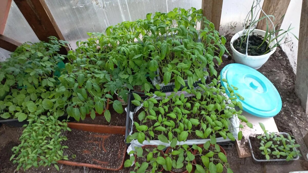 Рассада. Продолжаю пикировать. Погода испортилась. С парников, где стояли ящики с томатами, всё пришлось занести в рассадник. Ночью, по прогнозам плюс маленький, на самом деле до минус трёх. Занесла, пока не померзли мои томаты. Туда сюда выношу, мне бы еще один рассадник, вот бы! Баклажаны. Заказали мне баклажаны, в телицу отапливаемую сажают люди. Должны забрать на днях. Жду. Каждый раз радуюсь, даже не тому, что продала излишки, а тому, что места станет побольше.