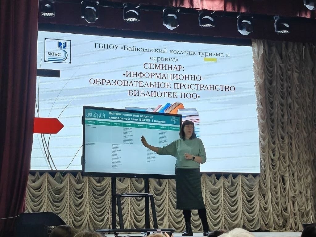 3 апреля состоялся семинар «Информационно-образовательное пространство библиотек ПОО» в библиотеке БКТиС. В нём приняли участие руководители, методисты, заведующие библиотеками и педагоги-библиотекари ПОО Республики Бурятия. С 6 по 10 апреля в Национальной библиотеке РБ и её филиалах прошли курсы повышения квалификации «Общедоступные библиотеки: новые компетенции в современных реалиях», собравшие заведующих отделами обслуживания центральных и городских библиотек республики. В работе мероприятий приняли участие декан ГИФ, к.и.н., доцент Е.А. Кучмурукова и руководитель образовательной программы «Библиотечно-информационная деятельность» И.А. Фокичева. Под их руководством слушатели освоили современные подходы к работе с социальными сетями. Особое внимание уделялось практическим навыкам создания и планирования публикаций, что позволило участникам повысить свою цифровую грамотность и эффективность взаимодействия с аудиторией.
