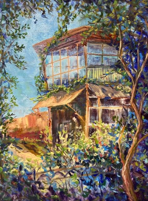 Холст, масло, 27 × 50 см. Есть картины, которые цепляют не сюжетом, а ощущением прожитого места. Для меня «Старая веранда» именно такая. В ней есть теплый воздух, густая зелень, солнечные блики на стекле и то особое чувство, когда дом почти исчезает в саду, но от этого становится только живее. Мне нравится, как художник работает с пространством: веранда будто открывается постепенно — сквозь ветви, листву, тени и просветы. Из-за этого картина воспринимается не как просто архитектурный мотив, а как воспоминание о лете, тишине и дачной жизни. Свет здесь играет главную роль: он ложится на рамы, на крышу, на траву и собирает всё в единое, очень живое состояние. Для меня это картина не столько о веранде, сколько о времени: о том, как места стареют, обрастают листвой, тенями, воспоминаниями — и становятся от этого только теплее. О художнике Захарьев Олег, художник ,работающий в традициях импрессионизма и русского реализма. Участник многих выставок Москвы