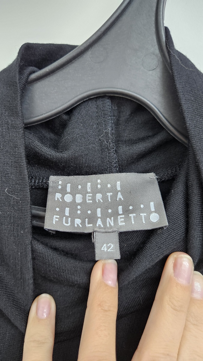 Лаконичное чёрное платье из шерсти с асимметричными рюшами — про тихую драму и утончённую женственность, которая не требует лишних слов.