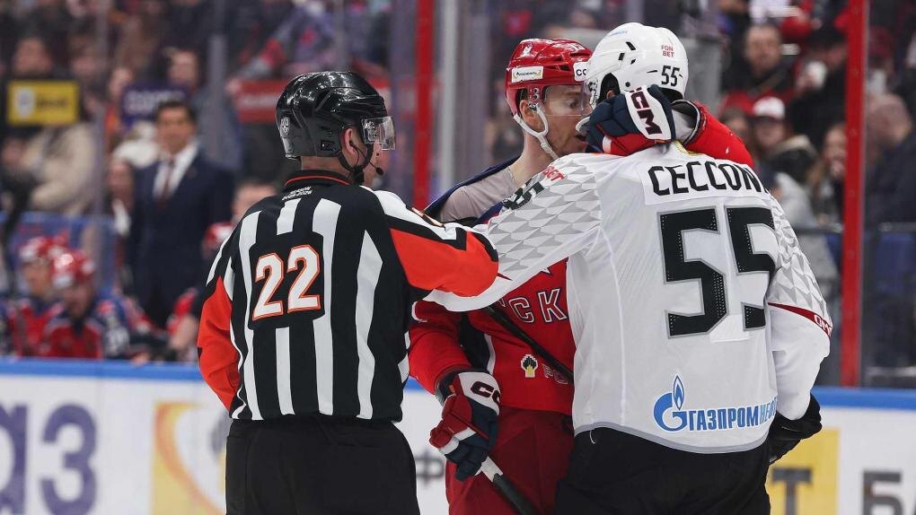 Техник ЦСКА по форме Игорь Перескоков в момент борьбы у борта оказался рядом с игровым эпизодом и начал хватать за голову защитника «Авангарда» Джозефа Чеккони, которого в этот момент атаковал Клим Костин.