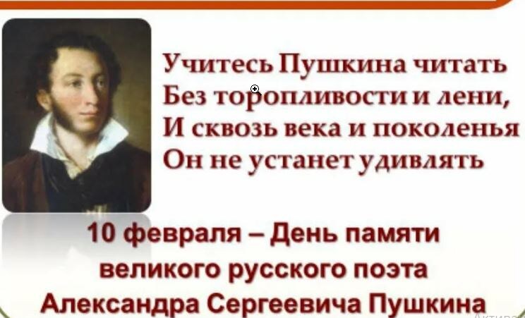 10 февраля — День памяти Александра Сергеевича Пушкина