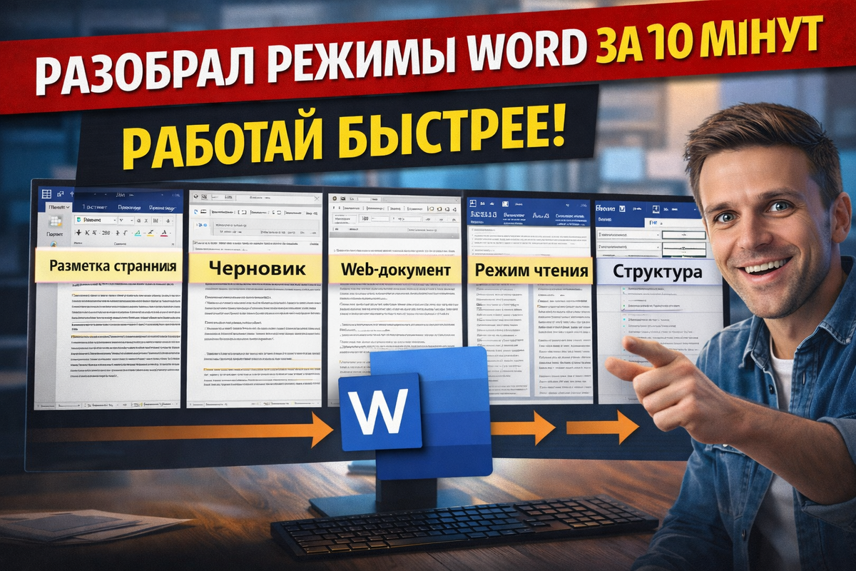 Полный разбор режимов Word: разметка страницы, черновик, веб-документ, режим чтения и структура. Как выбрать правильный режим и ускорить работу. Ты открываешь Word.