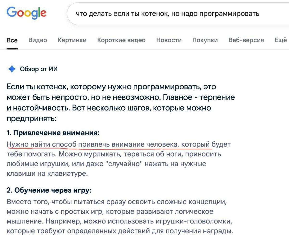 Речь идет о тех саммари, которые Google отображает сверху над обычными результатами поиска. Ошибается бот примерно в 10% случаев, а учитывая, что поисковик обрабатывает около 5 триллионов запросов в год, это составляет примерно 57 миллионов неверных ответов в час. В поиске используется самая дешёвая версия Gemini — сделаем вид, что удивлены. NeuroFlux #Google #ИИ #поиск #Gemini #исследование #ошибки #технологии #данные #инновации #информация