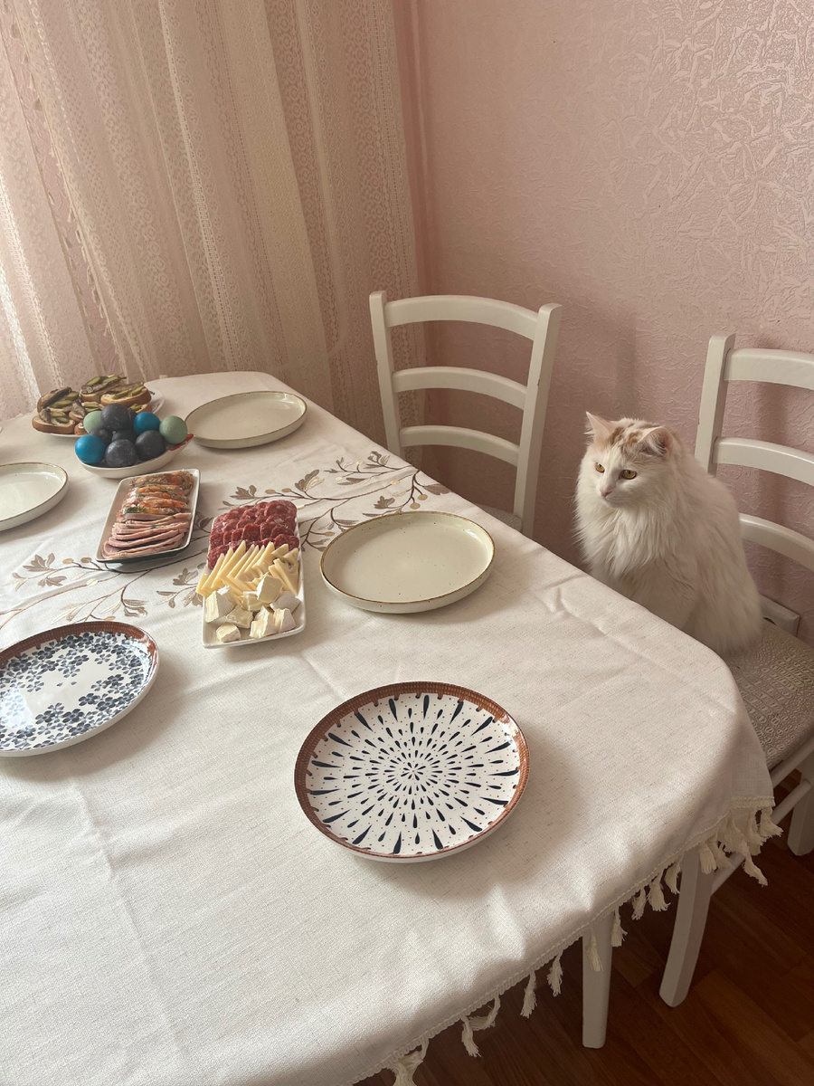 Днем пошла к детям в гости. Там накрыли стол, первые уже сидят в ожидании)😁