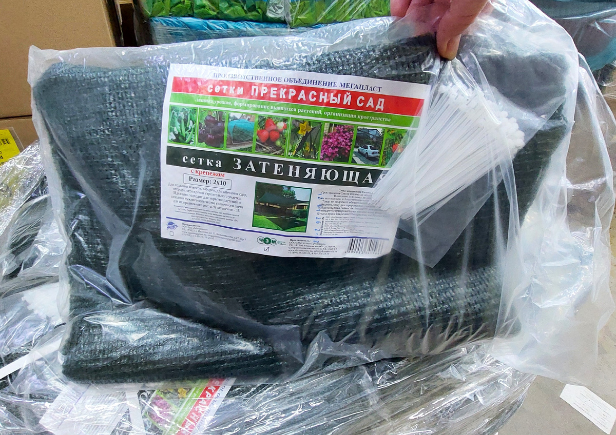 Привезли новую затеняющую Сетку - теперь она уже с крепежом в комплекте, а в прошлом году без него. Приходилось укреплять сетку своими подручными средствами. Затеняющая сетка нужна для создания зон отдыха, беседок, детских площадок. Применяется для укрытия авто и грузов при перевозке, а также для защиты воды в бассейнах и декоративных прудах от мусора, падающих листьев и грязи. Процент затенения 55%. Размер 2х10 м. Цена 528 рублей.
