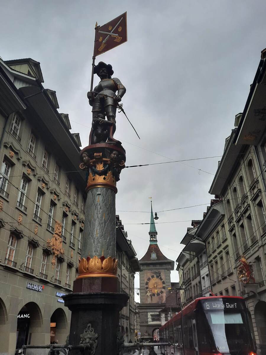 Есть среди бернских фонтанов представители славной швейцарской гвардии. Они, как положено, защищают город.