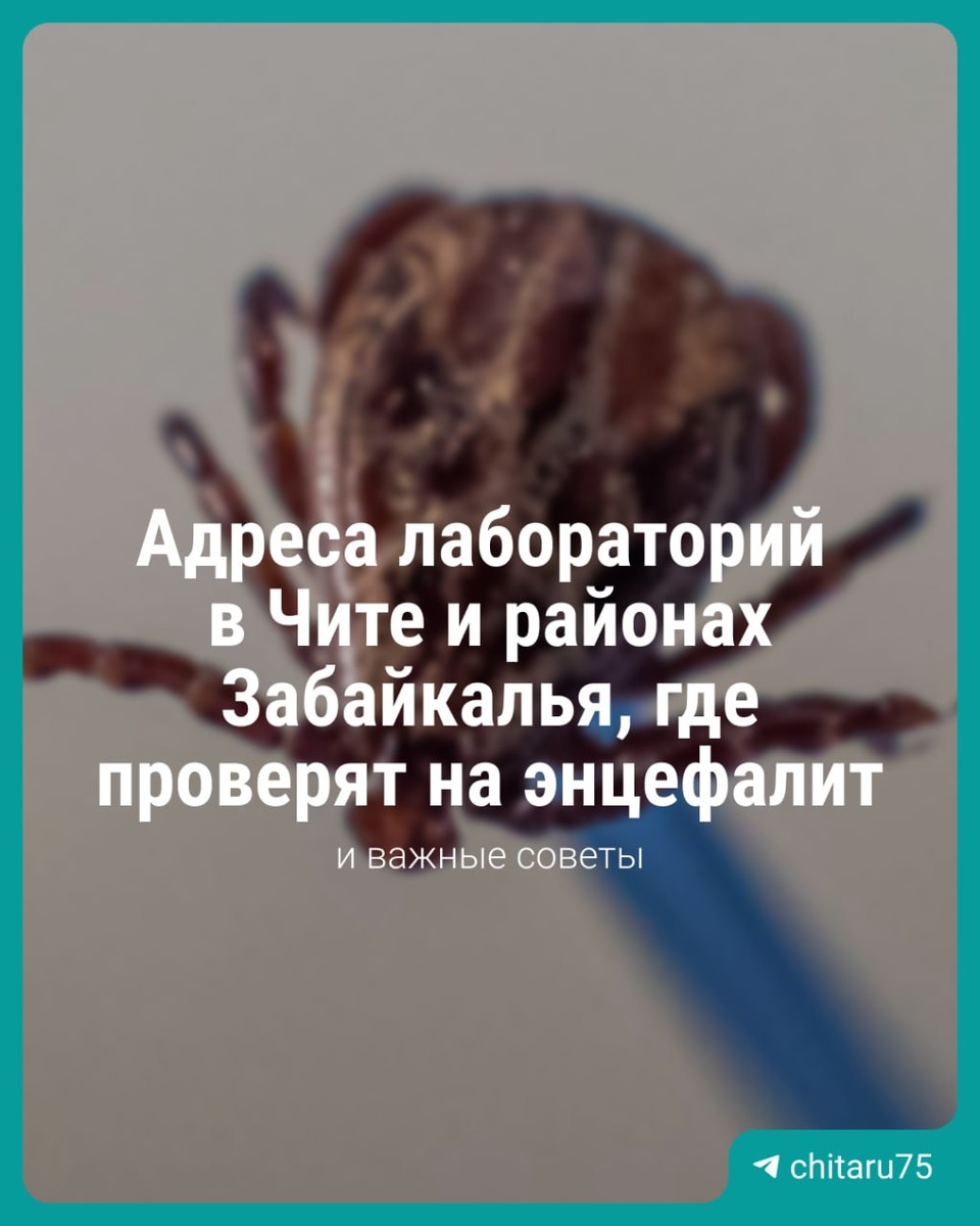 ? Клещи активизировались в Забайкалье — к врачам обратились уже 38 человек, пострадали 11 детей. По данным Роспотребнадзора, больше всего укушенных в Чите, но в городе и больше лабораторий, где могут проверить клеща на энцефалит и другие инфекции. Сезон открыли 24 марта — клещ укусил ребёнка за голову в Ононском районе. За 3 недели пострадали 39 забайкальцев, из них в Чите 15, в том числе четверо детей. В Роспотребнадзоре отметили, что из 32 районов края 24 относятся к эндемическим, поэтому жителям лучше поставить прививку от клещевого энцефалита. Где можно проверить клеща и что делать, если он всё-таки прицепился?⬆️ Если результат оказался положительным, надо идти к врачу, чтобы провести экстренную специфическую профилактику. Медики рекомендуют сделать это максимум через четыре дня после укуса. 🟦 «Чита.Ру» в MAX | Предложить новость