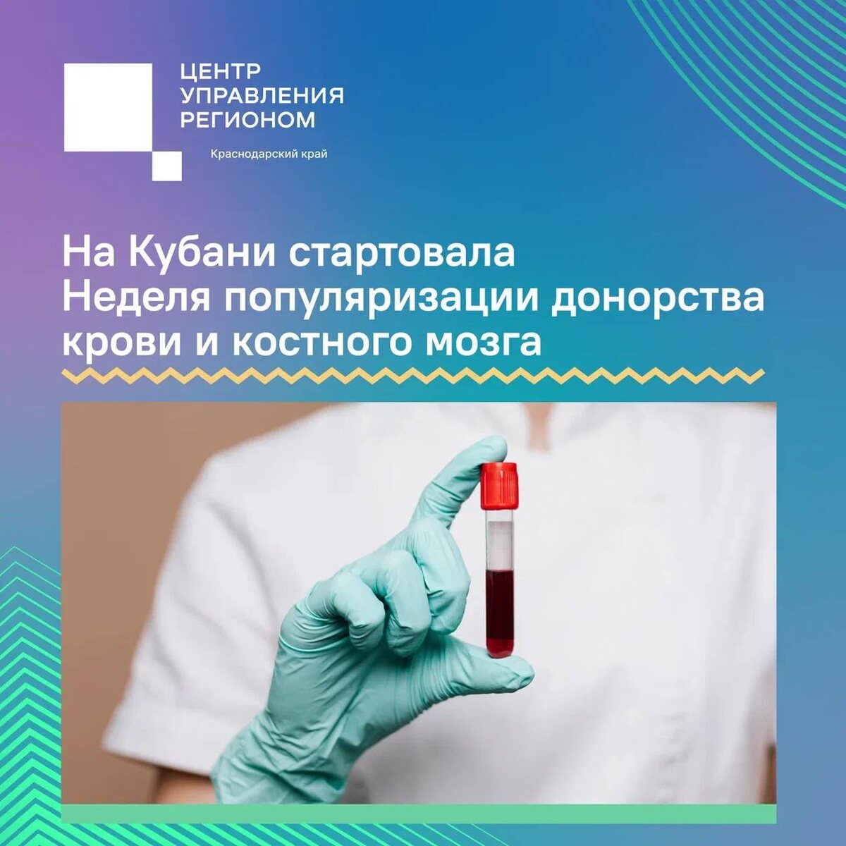 В Краснодарском крае с 13 по 19 апреля пройдёт тематическая неделя, приуроченная ко Дню донора (20 апреля