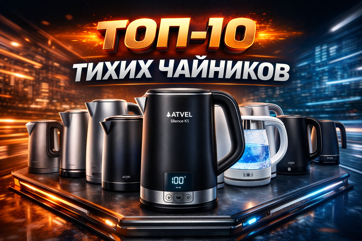 Лидером рейтинга становится модель, в которой продумано всё до мелочей — от уровня шума до точности нагрева. Atvel Silence K5 заметно выделяется на фоне остальных за счёт практически бесшумной работы: уровень до 50 дБ делает его одним из самых тихих решений в классе. Это особенно ощущается в вечернее время или в небольших помещениях, где обычные чайники звучат слишком громко.