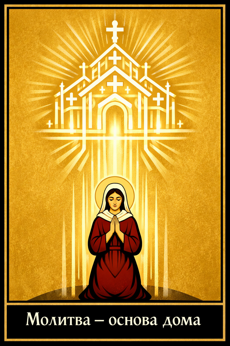 Жили в одном краю муж да жена — Иван и Евдокия. Дом их стоял на пригорке: не высок, не широк, но будто держался крепче других. И не могли люди понять — отчего так: ветры ходят, дожди льют, у иных крыши скрипят, стены трещат, а у них — стоит. И была у Евдокии привычка: вставать до света. Пока ещё тишина не разорвана делом, пока мир не заговорил шумом, становилась она у окна, склоняла голову и творила молитву — тихую, не для уха, а для сердца. И стояла так, будто не слова говорила, а дом свой невидимо выстраивала. И казалось: над нею, в тишине, поднимается иной дом — не из брёвен, не из камня, а из света и знаков, что не ветром колеблются и не временем рушатся. И держал тот невидимый дом — видимый. Но не все это разумели. Говорили люди: «К чему это? Дело надо делать, а не стоять. Дом руками строится, а не словами». И дошли те речи до Ивана. И сказал он однажды: — Может, и правда — лишнее это? Лучше бы раньше за дело бралась. Евдокия не спорила. Умолкла. И стали они жить иначе. Вставала о