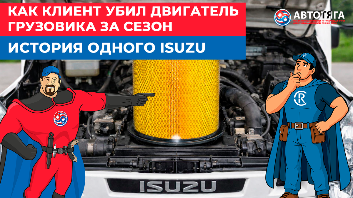 Здравствуйте, друзья. На связи Сергей — эксперт по запчастям для грузовиков в Автотяге. Сегодня будет поучительная и немного грустная история из нашего сервиса. Пригнали к нам Isuzu NQR. Жалоба: троит, не тянет, дымит. Вскрыли и ужаснулись. В цилиндрах — задиры, на поршнях — следы перегрева, в масле — эмульсия. Двигатель, проще говоря, приказал долго жить. Владелец в шоке: «Да я же только купил! Отъездил всего один сезон!». Начали разбираться. Пробег действительно небольшой. А вот история обслуживания — тёмный лес. Машину взяли с рук, и первым делом новый владелец решил сделать полноценное ТО, чтобы быть уверенным в технике. Но провели это обслуживание в первом попавшемся гаражном сервисе. И, как выяснилось, в рамках этого ТО поставили воздушный фильтр непонятного происхождения. С виду — копия оригинала, а по сути — картонка в пластиковом корпусе. За месяц активной работы этот «фильтр» размок от влаги, порвался, и вся пыль с дорог пошла прямиком в цилиндры. Масло быстро превратилось в