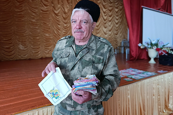 — Вот я и выбрал платочки. А почему бы и нет? - смеется атаман новорождественского хуторского казачьего общества в усы.