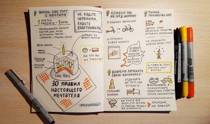 Скетчноутинг — это метод конспектирования, который объединяет текст с простыми рисунками, схемами и символами. Вместо скучных однотонных записей вы создаёте визуальные заметки, которые помогают лучше структурировать и запоминать информацию. Автором термина считается американский дизайнер Майк Роуди.