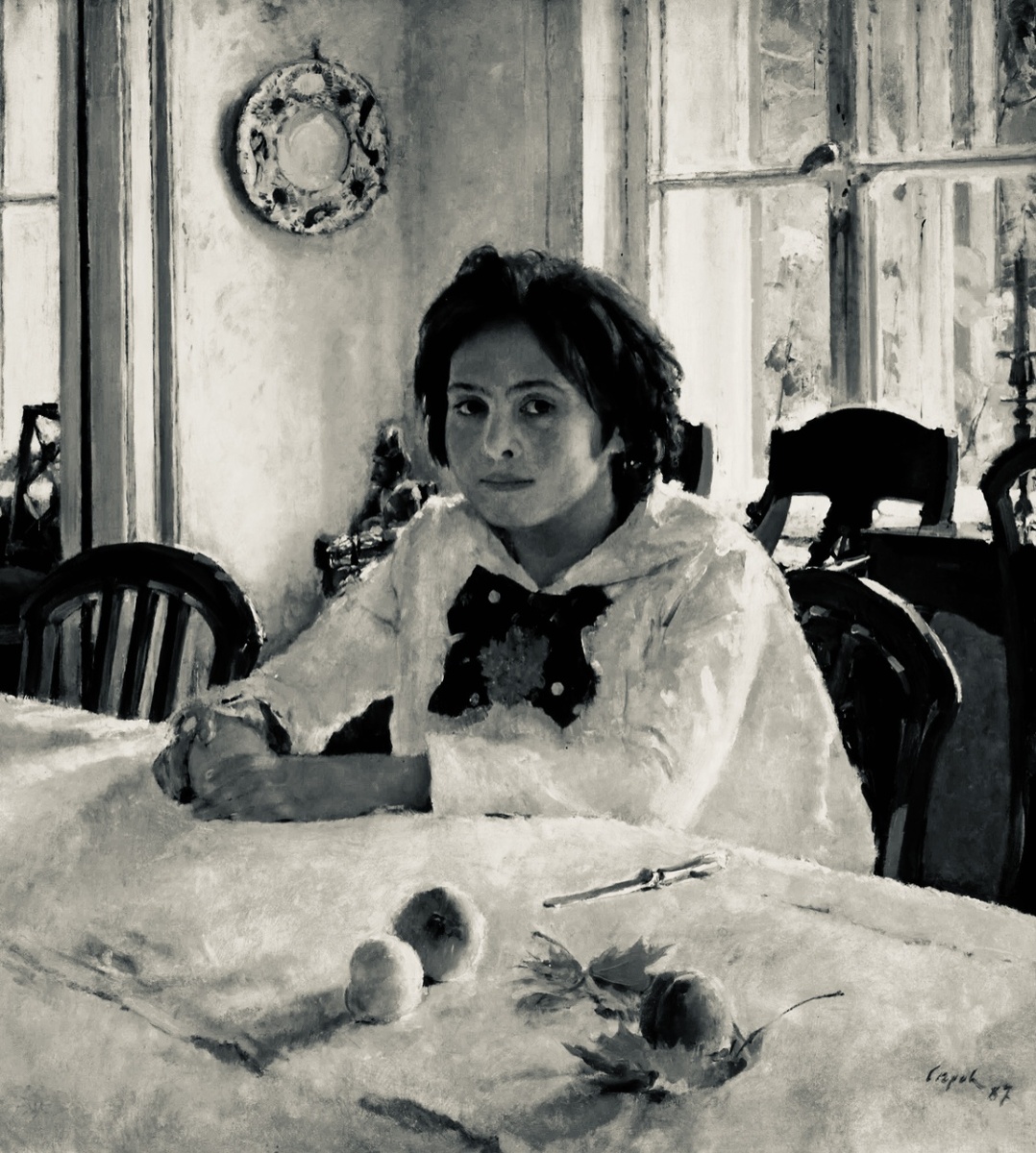 «Девочка с персиками» не улыбается. Мы привыкли смотреть на этот портрет как на эмблему беззаботного детства. Светлая столовая, лето, фрукты, румянец, уют. Почти открытка. Почти миф. Но, возможно, именно этот миф и мешает увидеть картину. А если мы скажем, что эта картина — не про счастье? Что свет в ней — не уют, а тревога? Что девочка смотрит не на нас, а сквозь — туда, где детство уже закончилось, а взрослость ещё не началась? Возможно, мы ошибаемся. Но давайте хотя бы попробуем посмотреть иначе. Девочка у Серова не растворена в солнце. Не играет в «счастливое детство». Не позирует как маленькая хозяйка усадебного рая. В её лице есть что-то более сложное: не печаль, не страх, а внутренняя настороженность. Взгляд Веры Мамонтовой как будто обращён не к зрителю, а сквозь него. Не в конкретную точку, а в неясность. И здесь картина вдруг перестаёт быть просто портретом ребёнка. Она становится образом порога. Мгновения, когда детство ещё здесь, но уже перестало быть убежищем. Когда мир