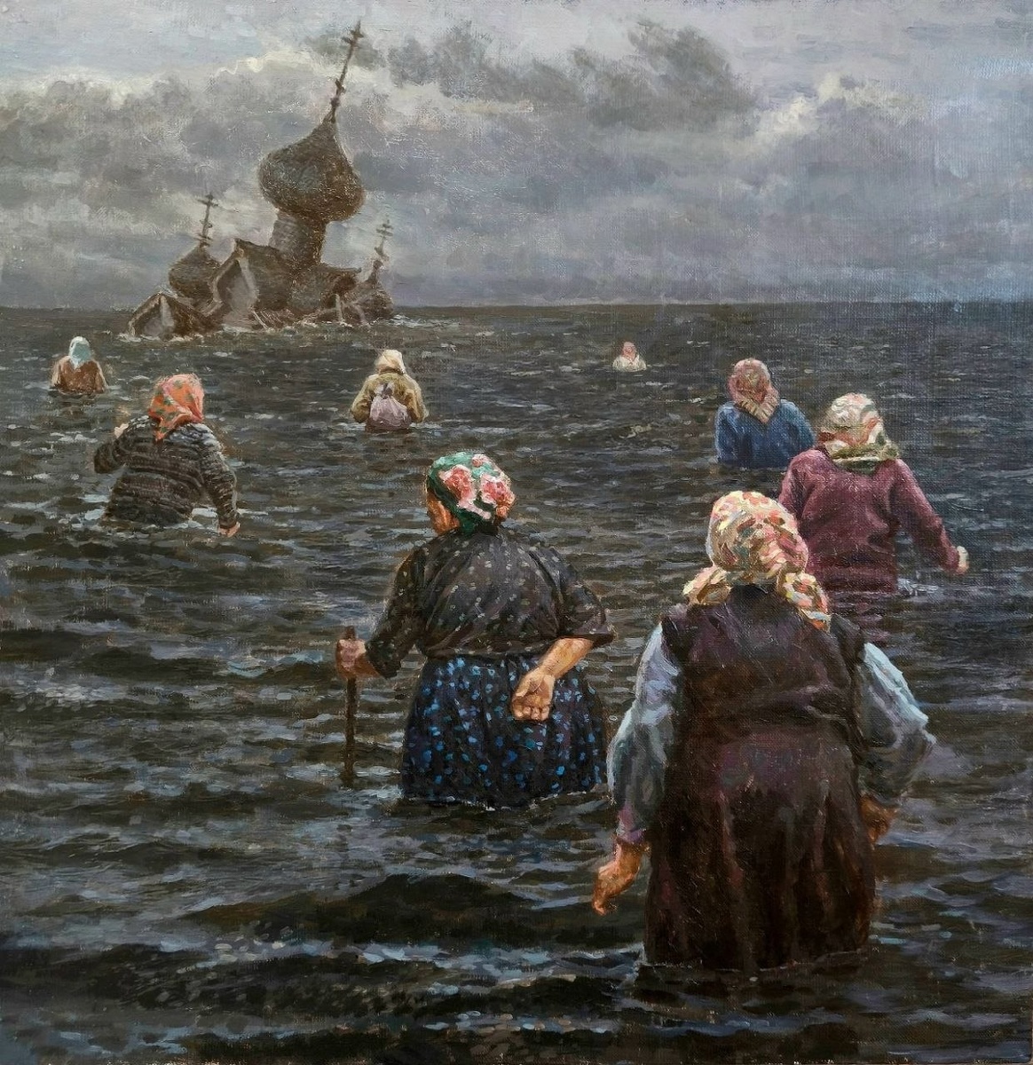 Андрей Шатилов в своей картине «Слезохранилище» решил поразмышлять о затопленных городах и селах, которые были жертвами строительства ГЭС