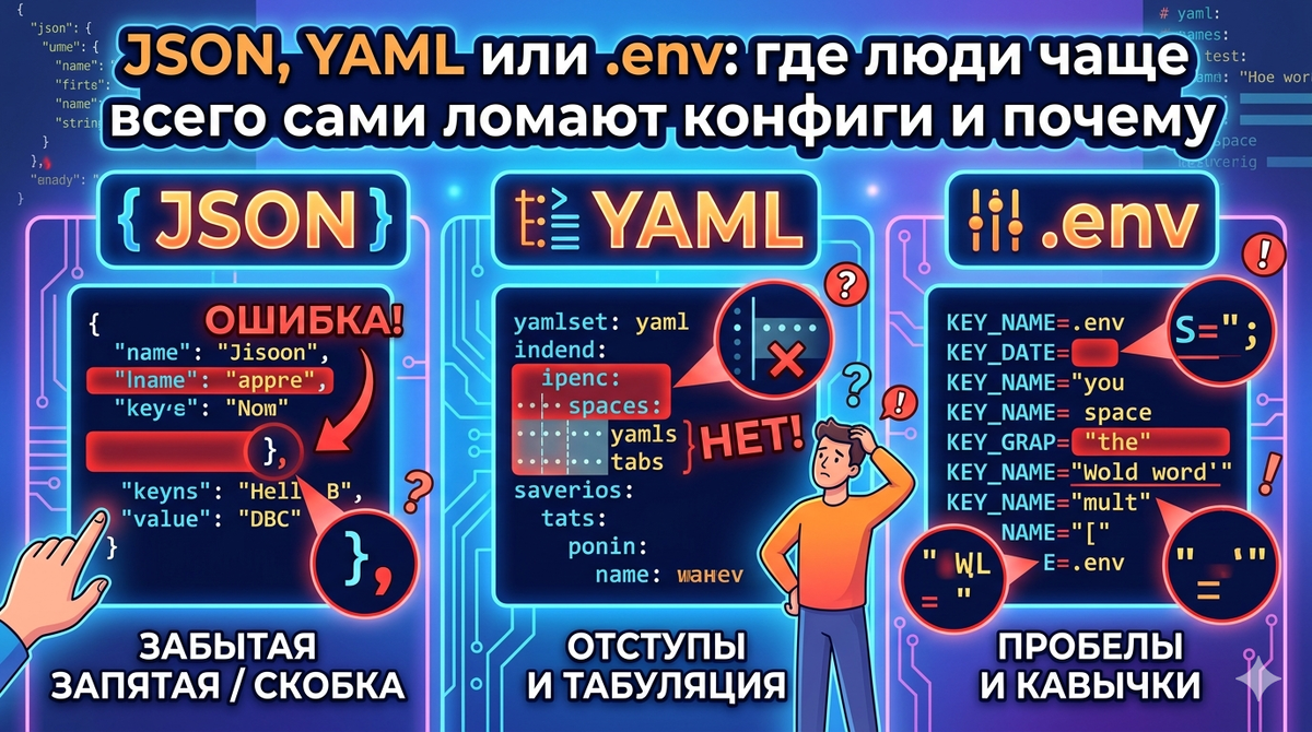 Если конфиг “почему-то не работает”, очень часто виноват не сервис и не инфраструктура, а формат файла и одна мелкая ошибка внутри него.