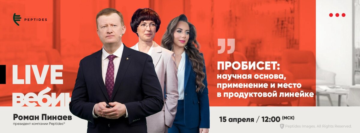 ЗАРЕГИСТРИРОВАТЬСЯ Компания Peptides® приглашает вас принять участие в открытом заседании научного совета, посвященном разбору интервью с профессором Натальей Александровной Михайловой — научным руководителем диссертационной работы, связанной с разработкой синбиотического комплекса «Пробисет». В рамках встречи мы проведем детальный разбор ключевых вопросов, связанных с научной базой продукта и его практическим применением. Для кого: Ведущие заседания: О чем пойдет речь: Присоединяйтесь к профессиональной дискуссии, направленной на глубокое понимание продукта, его научной базы и возможностей применения в практике. ЗАРЕГИСТРИРОВАТЬСЯ