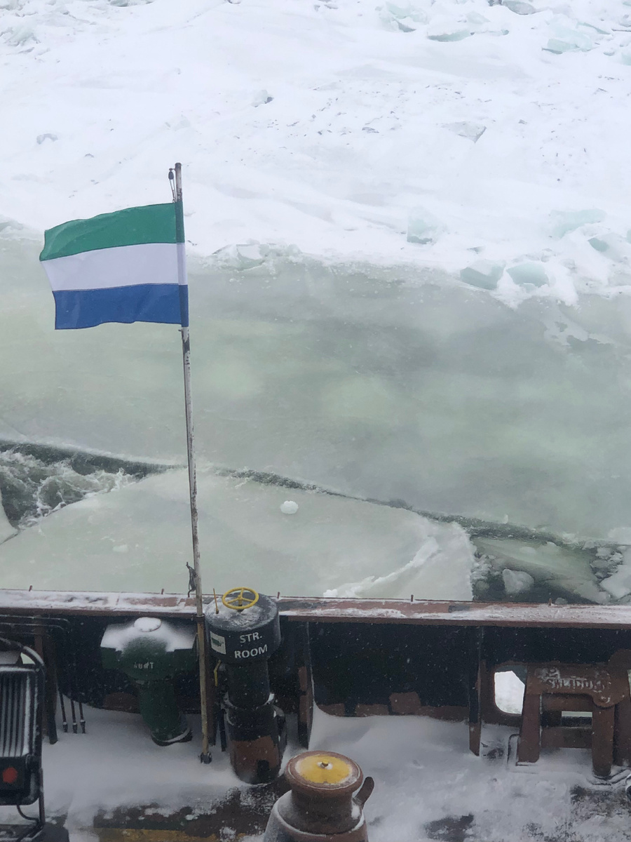 Флаг государства Сьерра-Леоне, гордо развевающийся над льдами Арктики - это фактически лицо сегодняшнего российского флота…