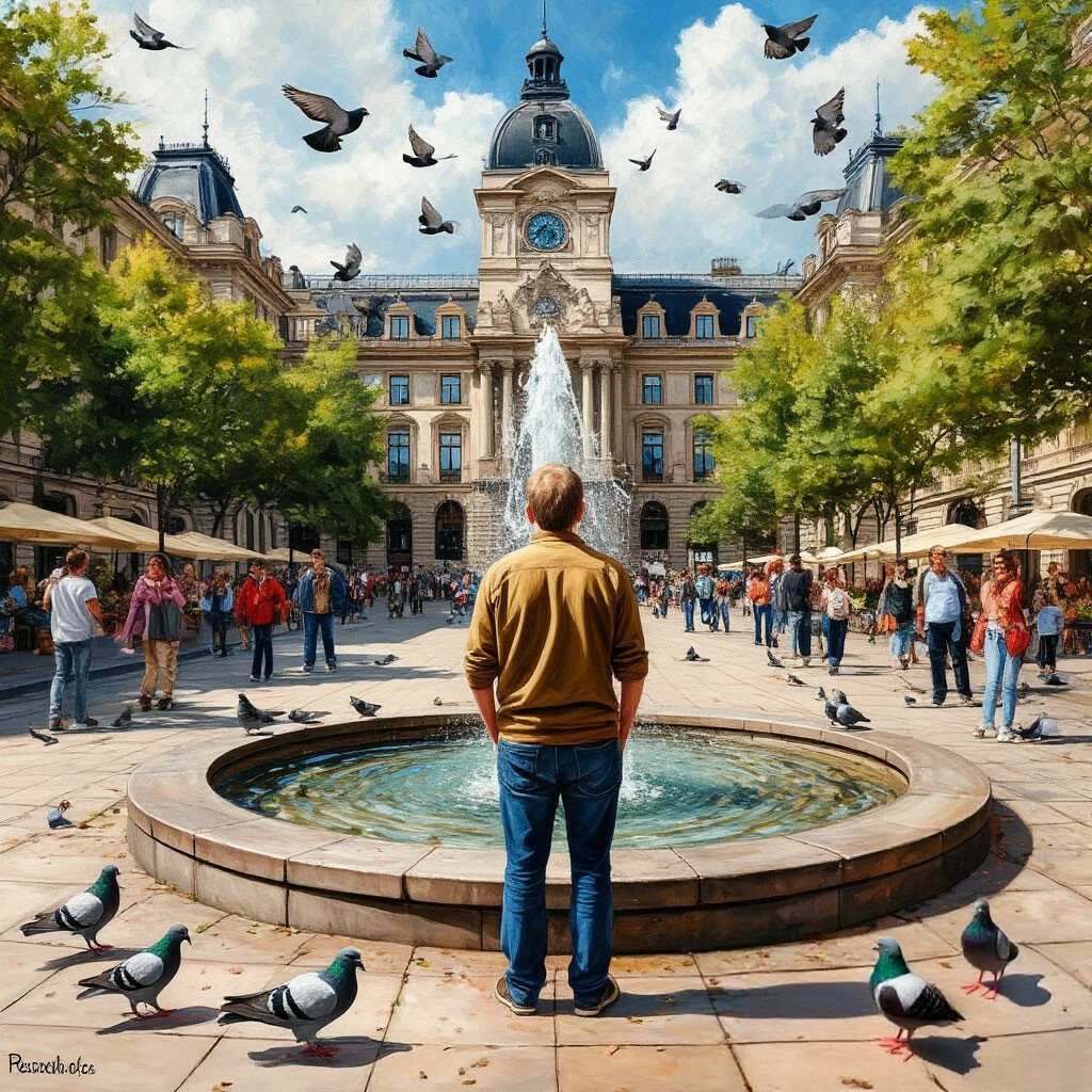 Он стоял посреди центральной площади, у фонтана. Вокруг шли люди, смеялись дети, голуби клевали крошки. Часы на здании мэрии показывали 03:08. Стрелки двигались вперёд нормально, без рывков и возвращений.