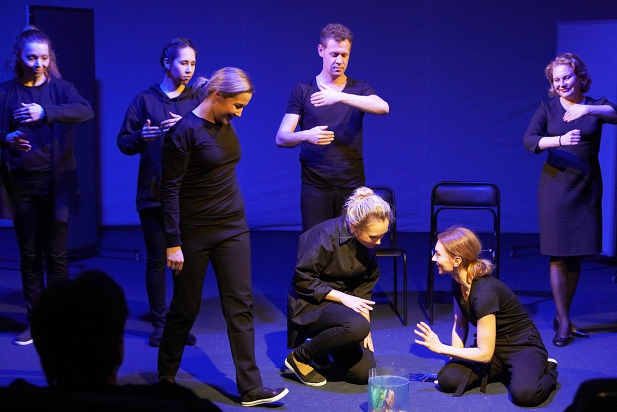 Началось все с лаборатории молодых драматургов, которая проводилась у нас в Уфе и куда меня пригласила участвовать Полина Шабаева. На лабораторию съезжаются или присылают работы драматурги, а режиссеры ставят небольшие фрагменты из предложенных на выбор пьес и поддерживают таким образом молодую драматургию. Мой выбор был не велик: пьеса «Пуговица», которую я совсем не поняла. Позже в ТЮЗе я увидела спектакль, поставленный по этой пьесе, который так же был мне непонятен. А вот во второй пьесе «Я - КУЛАК. Я - А-Н-Н-А», написанной драматургом Мартой Райцес, было за что зацепиться. Повествование велось от лица глухой девочки, чей текст произносил персонаж, называемый «голос Анны». Сама же героиня разговаривала на языке глухих. Остальные действующие лица были тоже безголосые, но жестами и артикуляцией должны были передавать происходящие на сцене события. Настоящий вызов режиссерской фантазии, да и для артистов замануха. Хоть и не оплачиваемая. Тем не менее нашлись в театре те, кто согласился на эту авантюру. Слава Богу, есть еще актеры, которые творчество ставят выше финансовой выгоды!