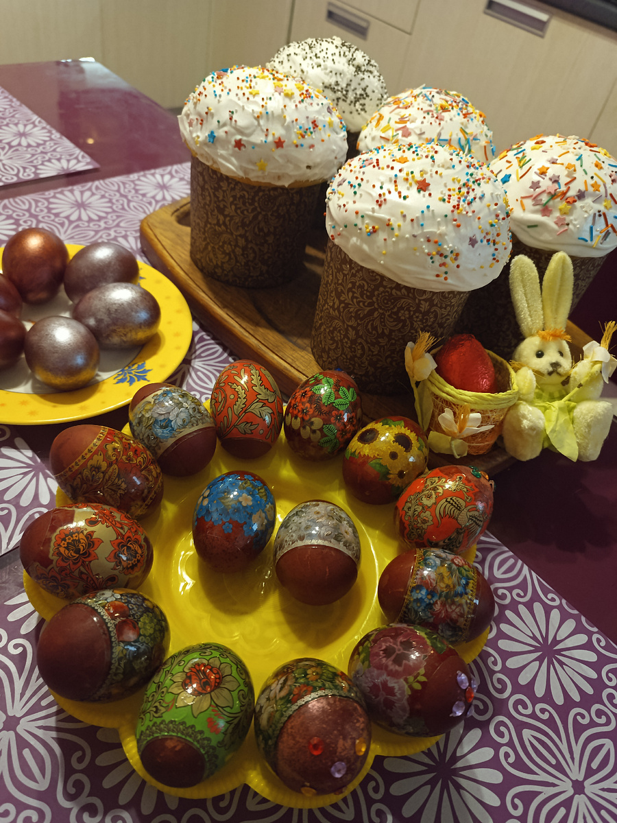 РЕЦЕПТ ПРИГОТОВЛЕНИЯ Для рецепта вам понадобится: Для теста на 5 форм диаметром 11 см и высотой 10-12 см: Для пропитки: Для украшения: ПРИГОТОВЛЕНИЕ Разбиваем яйца в миску, разбалтываем вилкой и отмеряем 200 г. К яйцам вливаем теплое молоко, добавляем сахар, соль, ванилин и хорошо размешиваем. Изюм моем, обсушиваем. Муку просеиваем и смешиваем с дрожжами. Вливаем в муку подготовленную сдобу и замешиваем тесто. Тесто получается довольно мягким и липким. Постепенно, порциями, вмешиваем в тесто размягченное сливочное масло (маргарин). В результате тесто станет ещё более мягким. Выкладываем тесто на рабочий стол и хорошо вымешиваем минут 15-20. Тесто должно стать эластичным, легко отставать от рук и стола, оставляя их чистыми. Вмешиваем в тесто изюм. Миску слегка смазываем растительным маслом, кладём тесто, накрываем и оставляем примерно на 1,5 часа для подъема. Подошедшее тесто обминаем и делим на пять частей. Каждую часть округляем и выкладываем в форму. Накрываем и оставляем ещё примерн