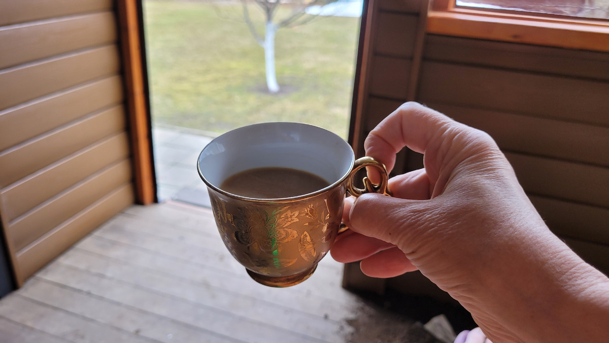 Утро отличное. На веранде выпила чашечку кофе, полюбовалась природой.