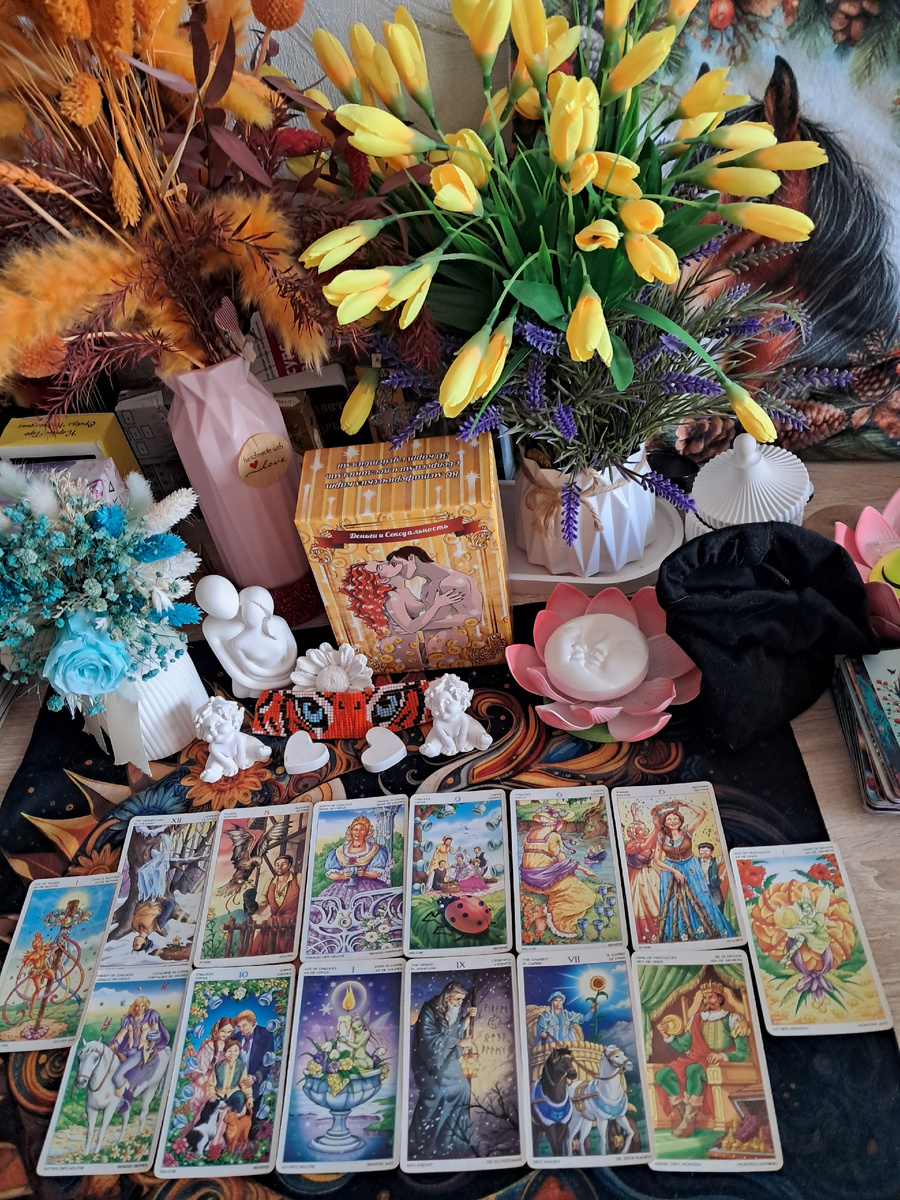 Расклад на Колесе года (12 карт + итог + совет) показывает, что в вашу жизнь входит очень сильный романтический союз, но путь к нему будет похож на эмоциональные американские горки. Главный «кто идет» — это Рыцарь Кубков (романтик-мечтатель) и Король Пентаклей (стабильный зрелый мужчина). Скорее всего, один и тот же человек проявит обе ипостаси.
