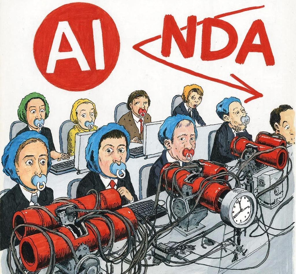 После конференции осталось странное, ощутимое раздвоение. С одной стороны — сцена, свет, уверенные голоса: «я сделал эту презентацию в ИИ», «загрузите свои данные — и всё станет быстрее», «это новая норма эффективности». С другой — реальность документов, которые лежат у меня на столе. Каждый файл проштампован NDA «для внутреннего пользования», «C2», «конфиденциально». Все сотрудники связаны комплаенсом так плотно, что не могут даже упомянуть проект, не то что показать его в портфолио. Запреты доходят даже до любых упоминаний о месте работы.