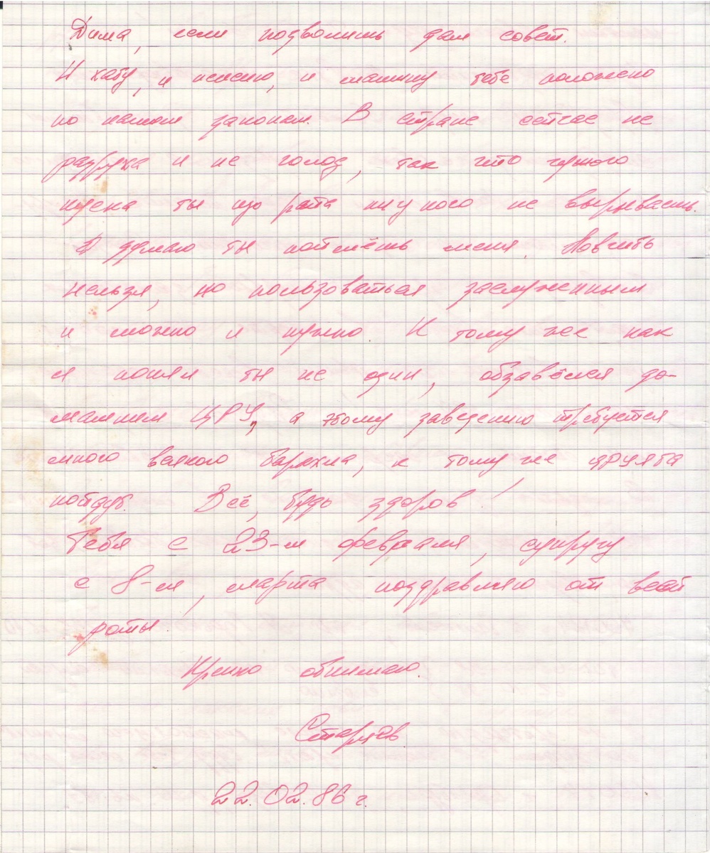 Ещё раз отмечу, к моменту получения письма я выбыл из состава роты, оказался не просто демобилизован, но и снят с воинского учета по ранению. Никогда больше мне не светило оказаться в Советской Армии рядом с ротным Старцевым. Зачем же он мне писал? Затем, что он своих не бросал и точно знал – мы его тоже не бросили бы в горах, не дай бог, с ним произошла бы какая-нибудь военная неприятность.