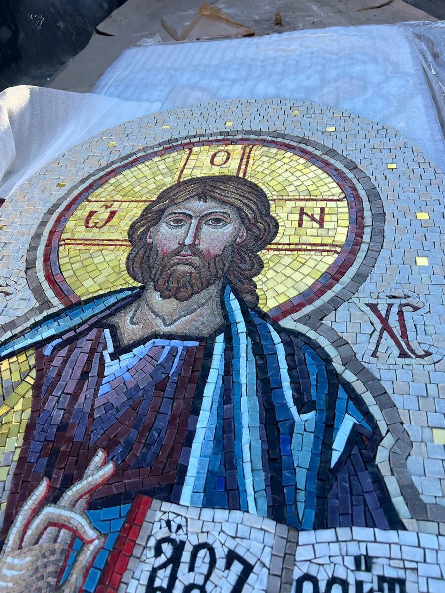 🥚 Всех с Праздником! ☦ В этом году Пасха для нашей мастерской выдалась особенно радостной — сразу два храма получили новые мозаичные иконы, созданные нами. 1️⃣Третья икона для храма Николая Чудотворца в Ульяновске Мы уже рассказывали о двух наших работах для этого храма — иконах Николая Чудотворца и Иоанна Лествичника. Ныне же мы завершили третью — мозаичный образ Спасителя. 🧷Начали с самого сложного: лик, руки, ноги собирали отдельно, методом прямого набора на сетку, чтобы проработать каждую деталь. Затем добавили фигуру Христа с Евангелием, складки одежд. Фон завершил композицию. Перед отправкой разделили икону на две части — так проще перевозить и монтировать. Вчера, в светлый праздник образ торжественно освятили на фасаде храма. Для всей нашей команды это стало особенно радостным и символичным событием 🙏 2️⃣ Новая работа для храма Покрова Пресвятой Богородицы в селе Чердаклы К нам обратились с просьбой выполнить мозаичную икону для фасада. Выбрали престолоный образ — один