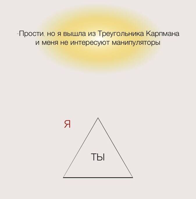 Теория 2.0 и механизм исцеления Жертва - Спасатель - Преследователь. Концепция треугольника Карпмана Эта модель один из самых точных инструментов для понимания: ✔️тяжелых жизненных сценариев ✔️созависимых и токсичных отношений ✔️инфантилизма и выученной беспомощности В центре треугольника - скинутая ответственность, которая «гуляет» между ролями. 🔴ЖЕРТВА Позиция, в которой человек «не может», «не справляется», «ему должны». Но за страданием часто стоят вторичные выгоды(то хорошее, что неосознанно человек получает): 🤷♀️внимание, забота, безопасность, энергия. Выход из этой роли пугает, потому что тогда: — никто не должен — нужно договариваться — появляется ответственность за свою жизнь Жертва часто идентифицирована с внутренним ребёнком. Основная защита - регрессия. В терапии важно: — исследовать вторичные выгоды — постепенно возвращать ответственность — интегрировать агрессию как ресурс движения При этом жертва будет сопротивляться изменениям. Все ресурсы могут разворачивать