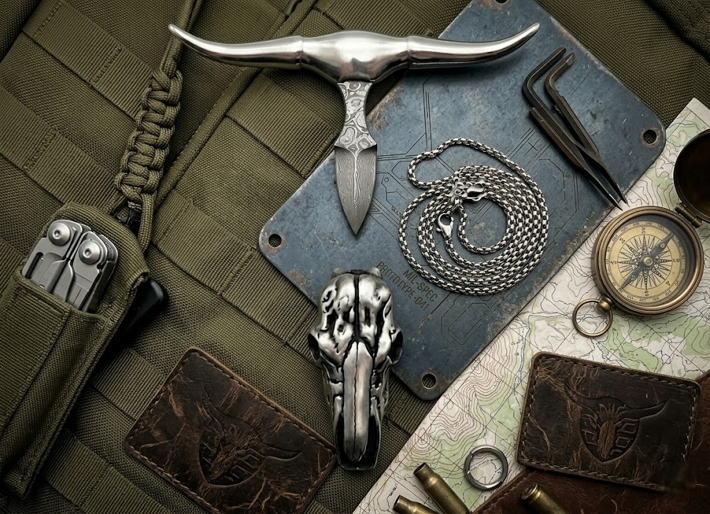 Привет, друзья! Если вы ищете компактный, но очень характерный нож, который сразу привлекает внимание, то тычковый Bull Head в дамасском исполнении — это настоящий маленький боец с яркой внешностью. Этот ножик удивляет своими миниатюрными размерами и солидным весом. Общая длина всего 7 см, длина лезвия 3 см, при этом ширина конструкции достигает 11 см. Вес 109 грамм — чувствуется уверенная тяжесть в кулаке, хотя сам нож помещается практически в любой карман. Лезвие выполнено из стали D2 в виде ламинированного дамаска. Твердость 58 HRC обеспечивает хорошую остроту и достойную износостойкость. Красивый волнистый узор дамаска делает каждый экземпляр уникальным. Головка в форме бычьей головы полностью стальная и служит не только украшением, но и мощным элементом конструкции. Нож поставляется в стильной алюминиевой коробке — отличный подарочный вариант. Bull Head дамаск — это не просто инструмент, а маленький аксессуар с характером. Идеально для тех, кто любит необычные вещи и ценит ручную