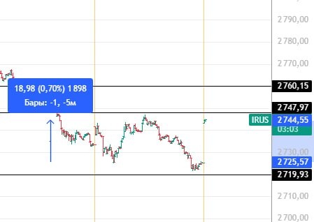Откроемся гэпом вверх +0.7% у лок максимума пятницы Расклад без изменения, Чуть откупают товарку. Фон негативный Нефть чуть откатила +6.5% __________ Новых новостей нет Придерживаюсь плана, тех откат на фикс лонга. Если задернут выше, буду перезаходить контр тренд. _______________ ПС: Сделал покупки в инвест портфель, Тиньков сейчас прогрузится, скину общую картину по инвесту
