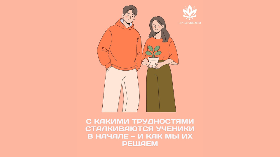 Новые звуки, слова, алфавит, непривычная структура языка могут создавать перегруз. Мы решаем это за счёт чёткой последовательности и небольших шагов, чтобы язык укладывался постепенно. Вторая трудность — страх говорить.