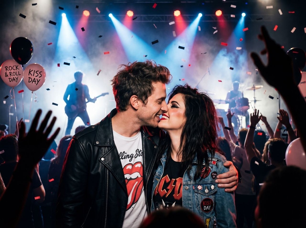 Промпт - пара на концерте в честь дня поцелуев и дня рок-н-ролла