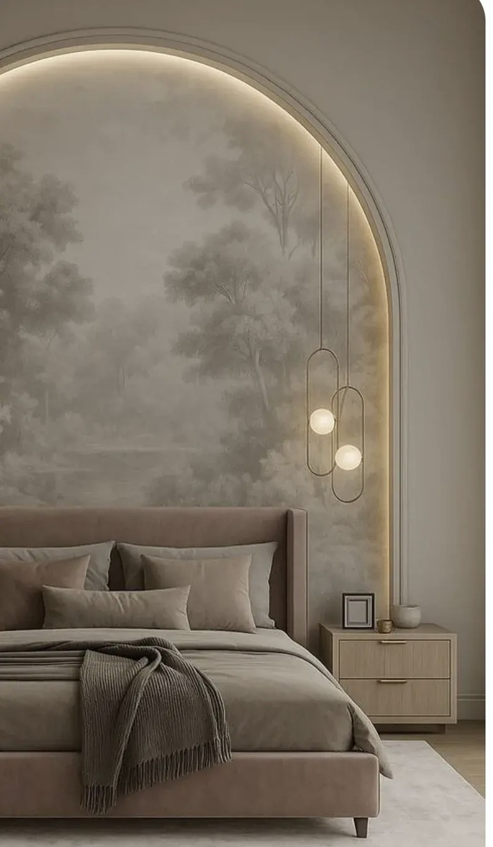 Вместо межкомнатной двери в спальню. Там, где не нужна звукоизоляция, арка работает отлично. Особенно если спальня примыкает к гардеробной или кабинету.