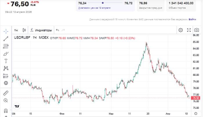 В апреле рубль демонстрирует уверенное укрепление, вернувшись к уровням начала года. Падение основных иностранных валют с мартовских пиков составило до 10%: доллар торгуется в районе 77 рублей (против 85), евро — около 90 (против 97), а юань опустился с 12,65 до 11,2. 📌Причины укрепления: приток валюты и низкий спрос Аналитики БКС «Мир инвестиций» объясняют динамику сочетанием нескольких факторов. С одной стороны, на рынок продолжает поступать высокий объем валютной выручки от продажи сырья. С другой — спрос на валюту остается низким из-за приостановки покупок Минфином и отсутствия дефицита юаневой ликвидности (ставка фондирования ниже 1%). «Влияние этих факторов пока сохраняется, однако технически валютные инструменты уже сильно перепроданы», — отмечают эксперты. Они прогнозируют, что глобальное укрепление доллара может привести к стабилизации пары USD/RUB, а уверенное восстановление курсов начнется летом и продлится до конца года. Среднесрочными уровнями сопротивления называются