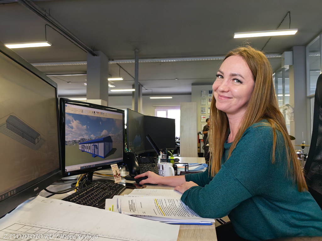 Начинается всё с проектирования. Мы в офисе компании. Первым делом выясняется потребность клиента, и начинается работа. Как эксперты, специалисты компании подсказывают ему, какая «конфетка» лучше подойдёт именно для решения конкретных поставленных задач. Для этого анализируется местоположение, природные факторы, потребность и количество расселяемых людей. Как результат, в коммерческом отделе компании, создается первое изображение будущего объекта, например, вахтового поселка или одиночного здания - эскизный проект объекта. Далее эскиз модульного здания, уже как четко сформулированное техническое задание, поступает в проектное бюро. Всё здесь же. Теперь наш эскиз насыщается технической базой. Каждый элемент объекта предстоит рассчитать - это обязанность главного конструктора. Выполнив все расчеты, он ставит задачи перед конструкторами. После утверждения заказчиком проектные планировки модульного здания передаются инженеру-технологу. Этот специалист создает план расстановки в помещении м